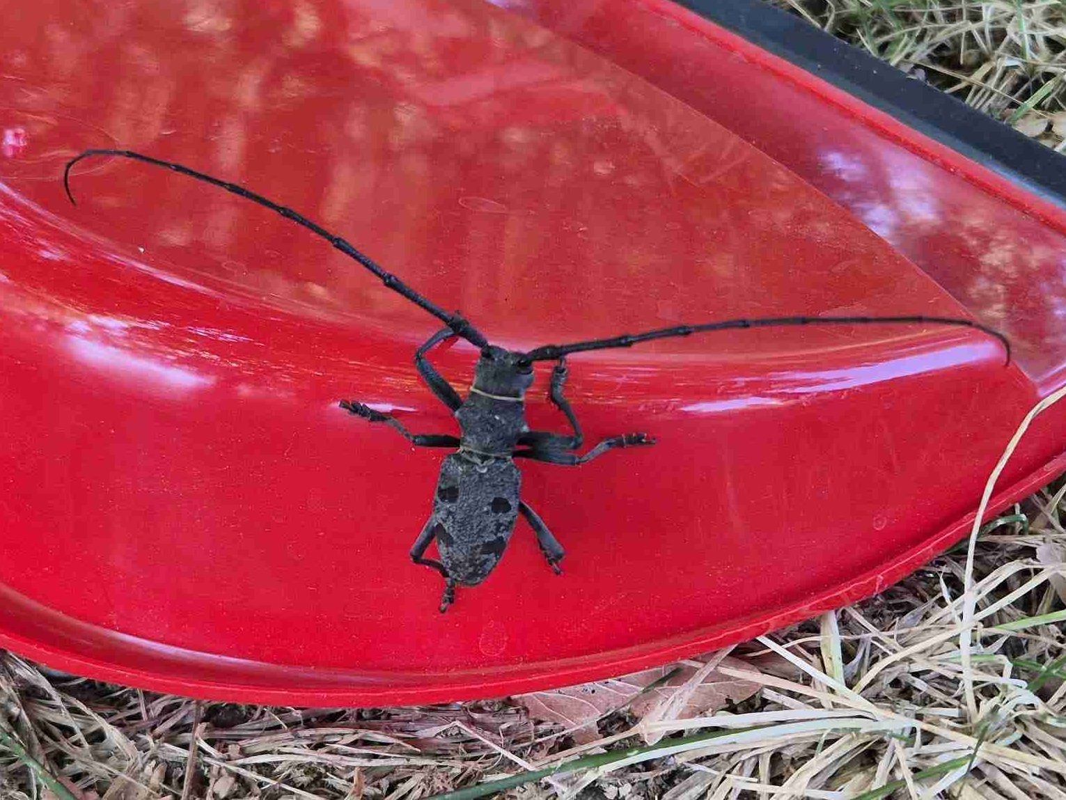 Maschio di Morimus asper. Si notino le lunghe antenne, le quali nella femmina sono molto più brevi. Foto di Elena Borlandelli.